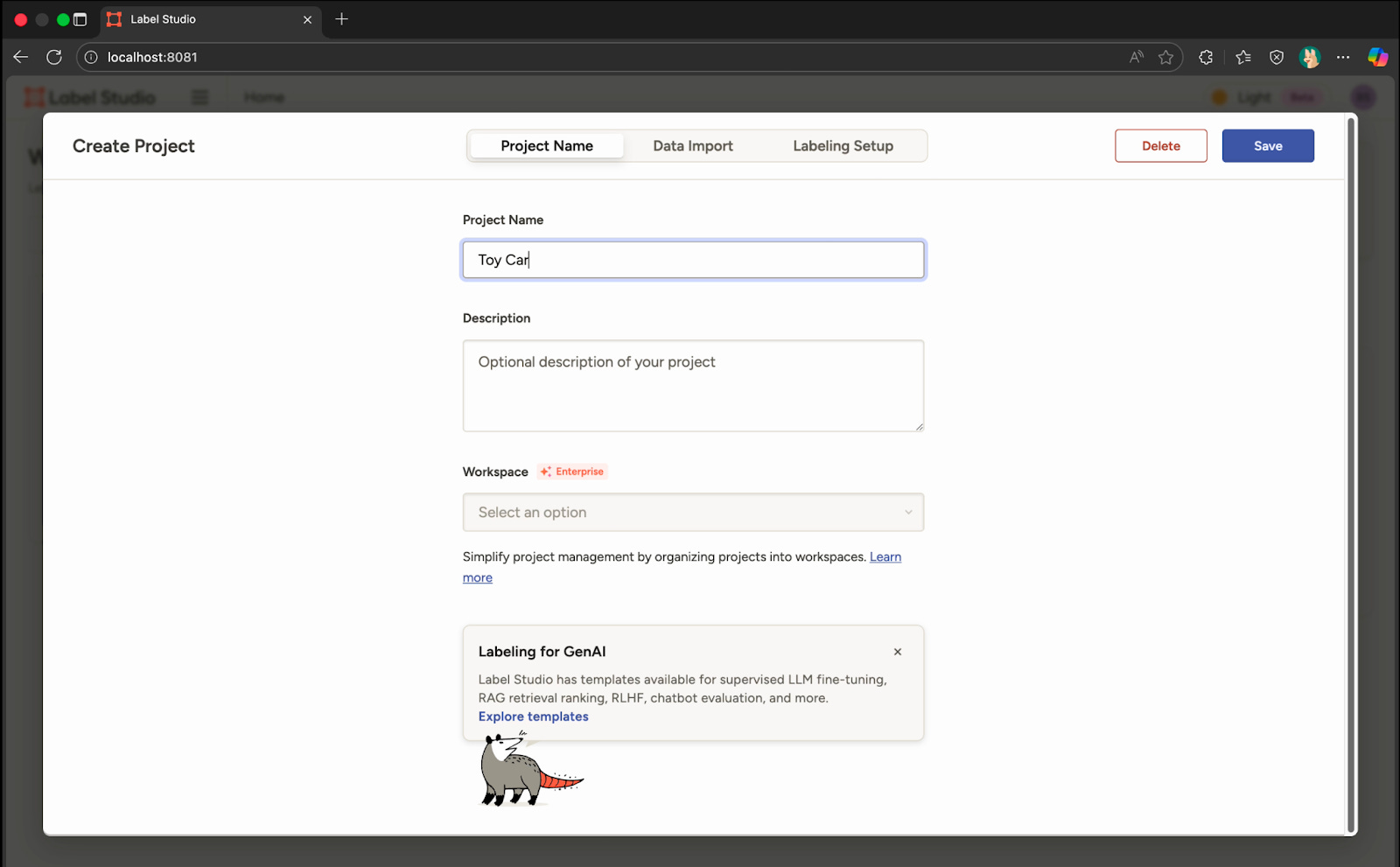 Annotation နှင့် Labelling အတွက် Label Studio နှင့် အသုံးပြုထားတယ်။ Label Studio က Web Application ဖြစ်တာကြောင့် localhost မှာ Run တယ်။ Label Studio မသုံးခင် အရင်ဆုံးသူ့ထဲမှာ Local Account Create လုပ်ပေးဖို့လိုတယ်။ Account ရပြီဆိုရင်တော့ Login ဝင်လိုက်ပြီး Project တစ်ခု Create လုပ်ရတယ်။
